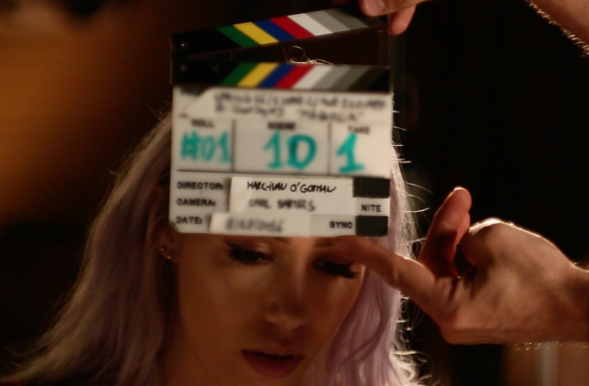 Here I am directing a dramatic scene with my acting students on Universal Studios backlot…